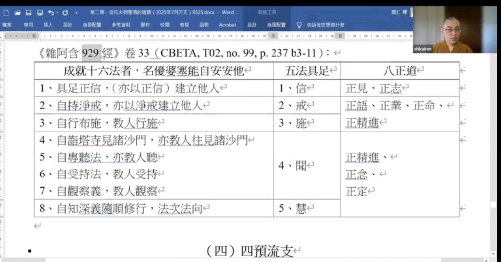 2025年網絡課程《佛法四講》II「從凡夫到聖者的道路」已於7月26日圓滿結束。課程於每週六晚上透過 Zoom 平台進行,平均出席人數達100餘人,顯見學員對正信佛法學習的高度熱忱。本課程由寂靜禪林方丈──開仁長老親自主講,針對佛法修學的基礎與次第進行深入淺出的引導。