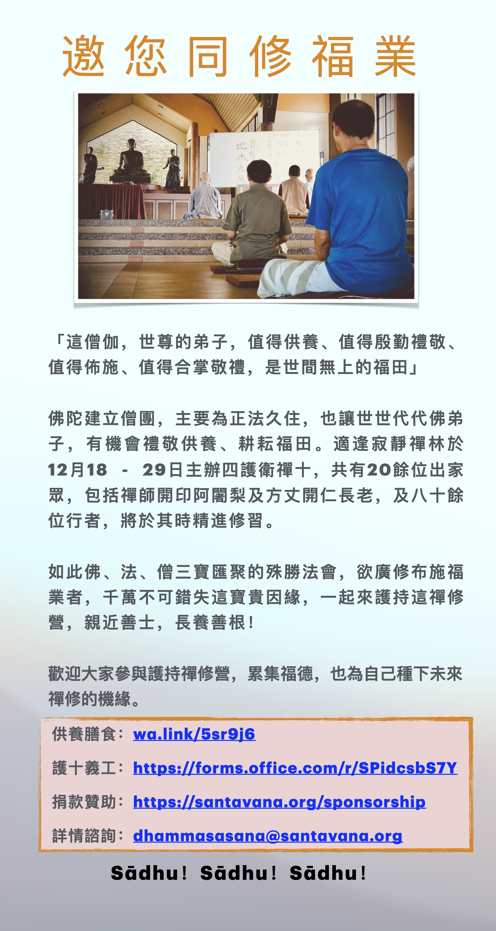 詢問處 :大眾教育部(dhammasasana@santavana.org)