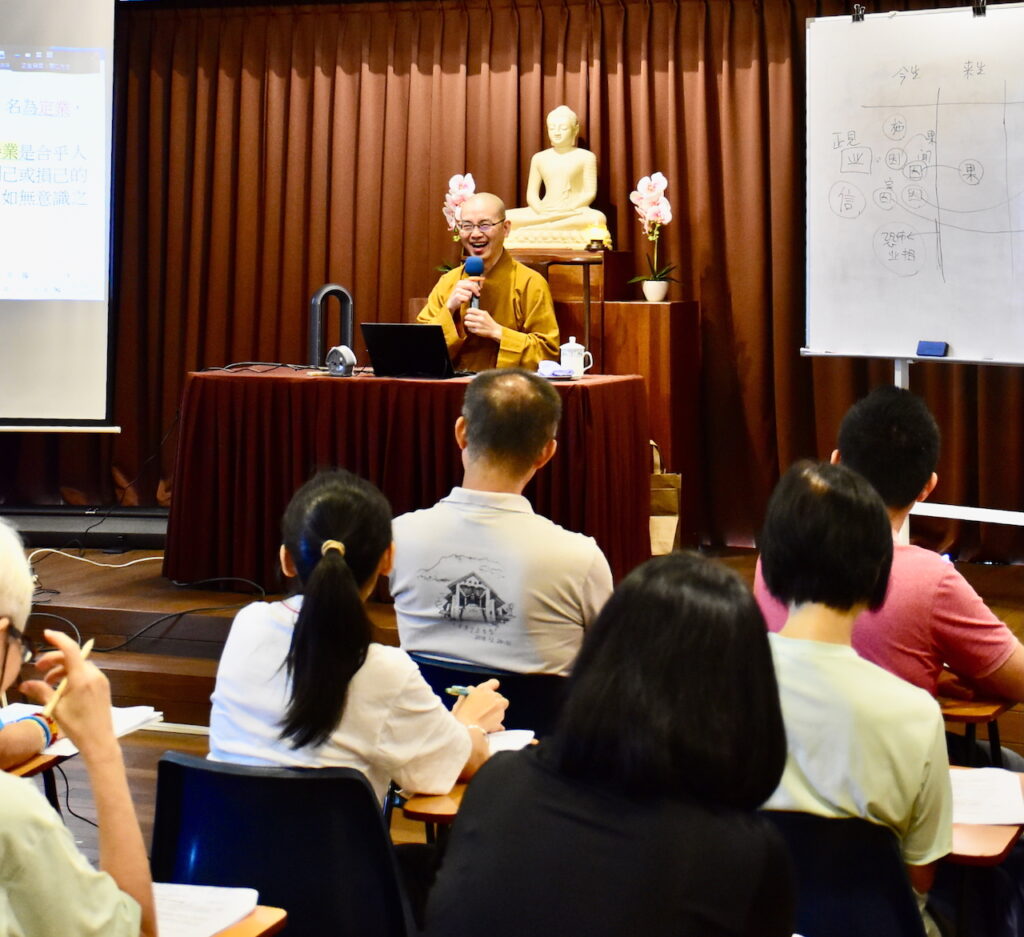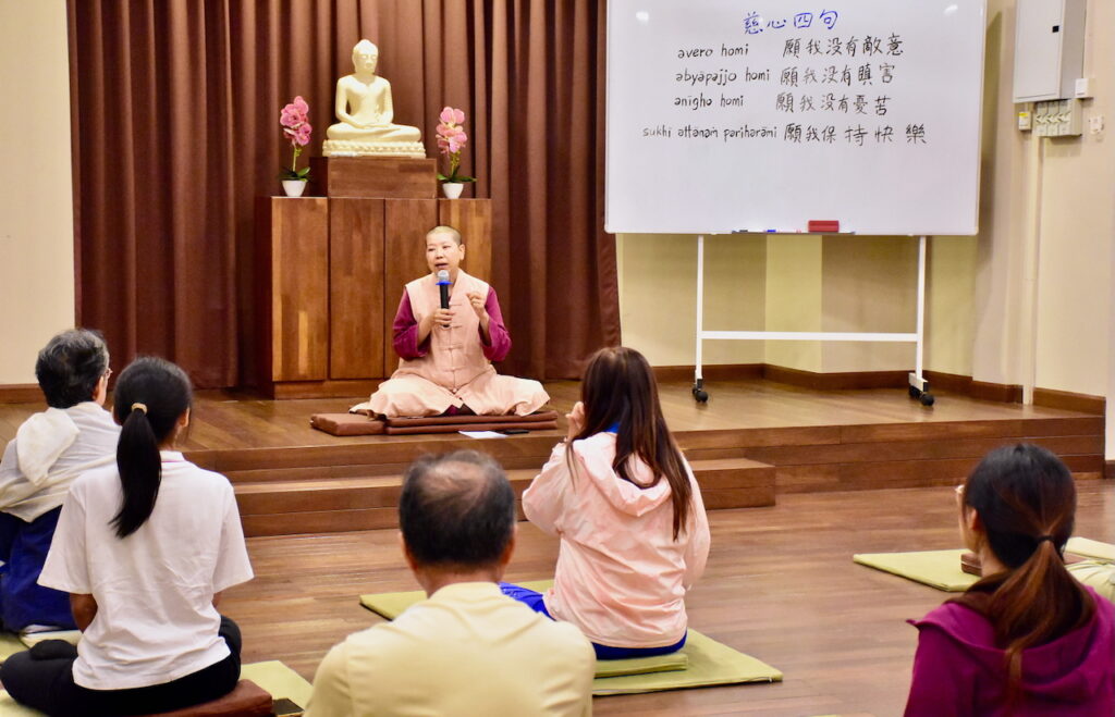 下午實修環節以慈心禪為主軸,由禪戒法師帶領學員練習慈心培養之法,從對自身修習慈心,逐步擴展至一切眾生,協助學員將理論轉化為內在體證。課程尾聲的學員分享環節溫馨懇切,參與者匯報實修體會與生活實踐之計劃;活動於全體合影後圓滿落幕。