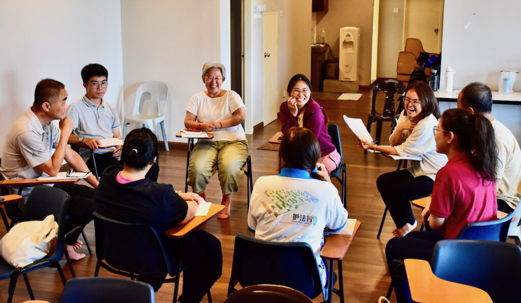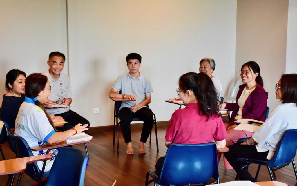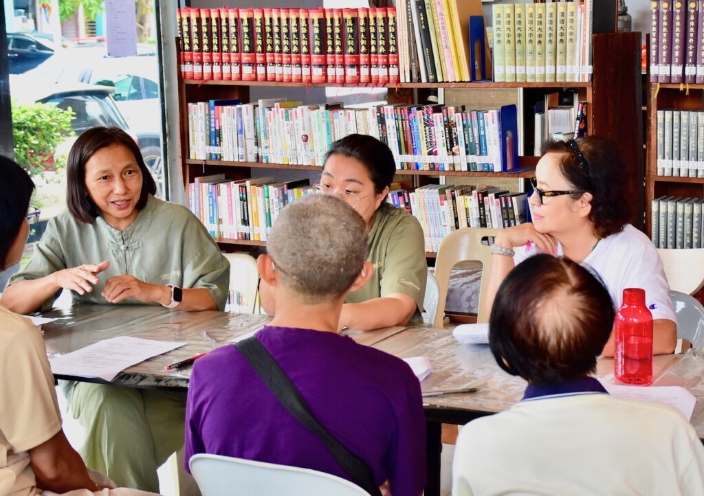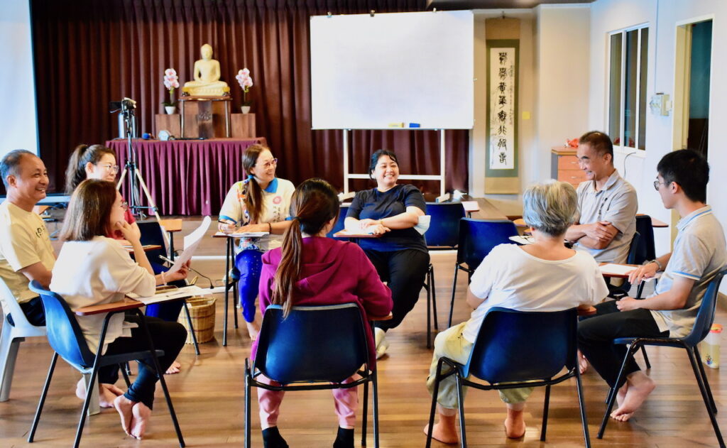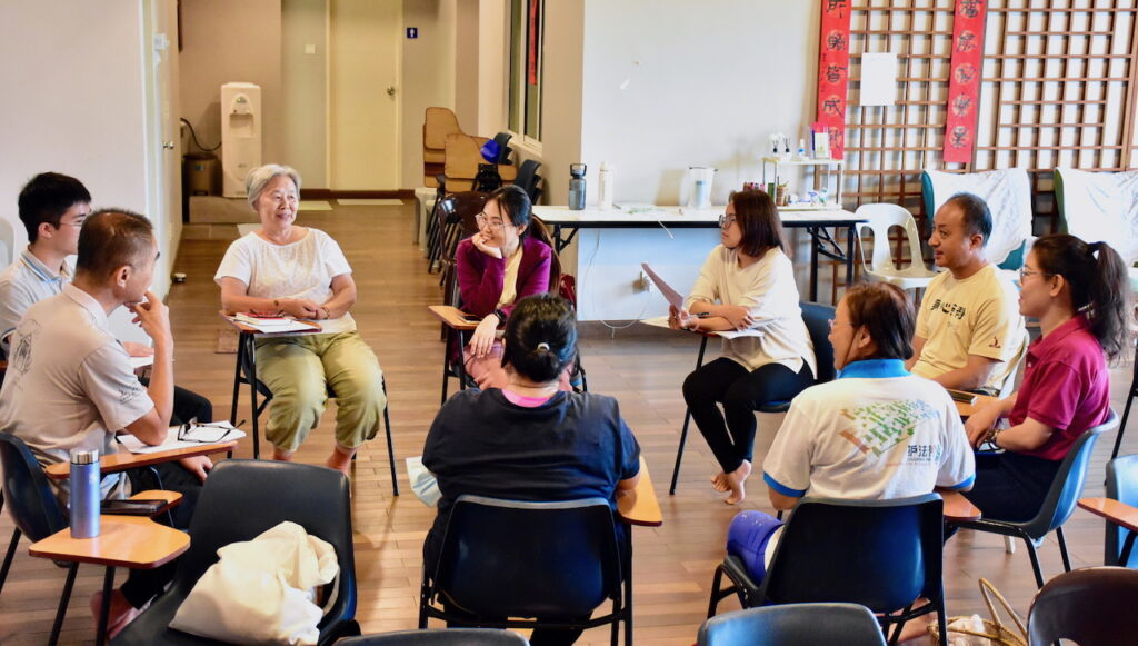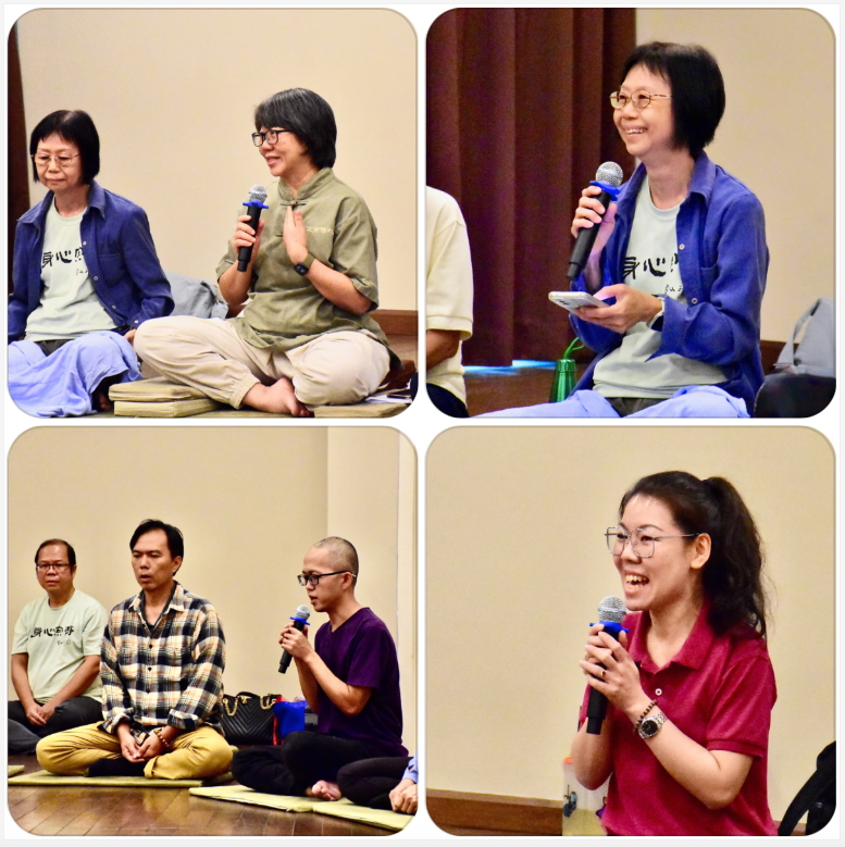 午間分組討論環節中,學員於組長引導下,針對貪、瞋、癡等煩惱於日常互動中的顯現展開交流,踴躍提問並分享個人觀察,透過互動深化對煩惱因緣與業果關係之理解。