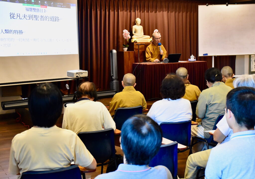 2025年9月14日(星期日),本次「福慧雙修日 II」一日研習營於寂靜禪林教育中心舉行,禮請寂靜禪林方丈開仁長老授課,共有三位法師、二十八位學員及義工參與。眾人齊聚一堂,深入探討煩惱轉化之修學要旨。