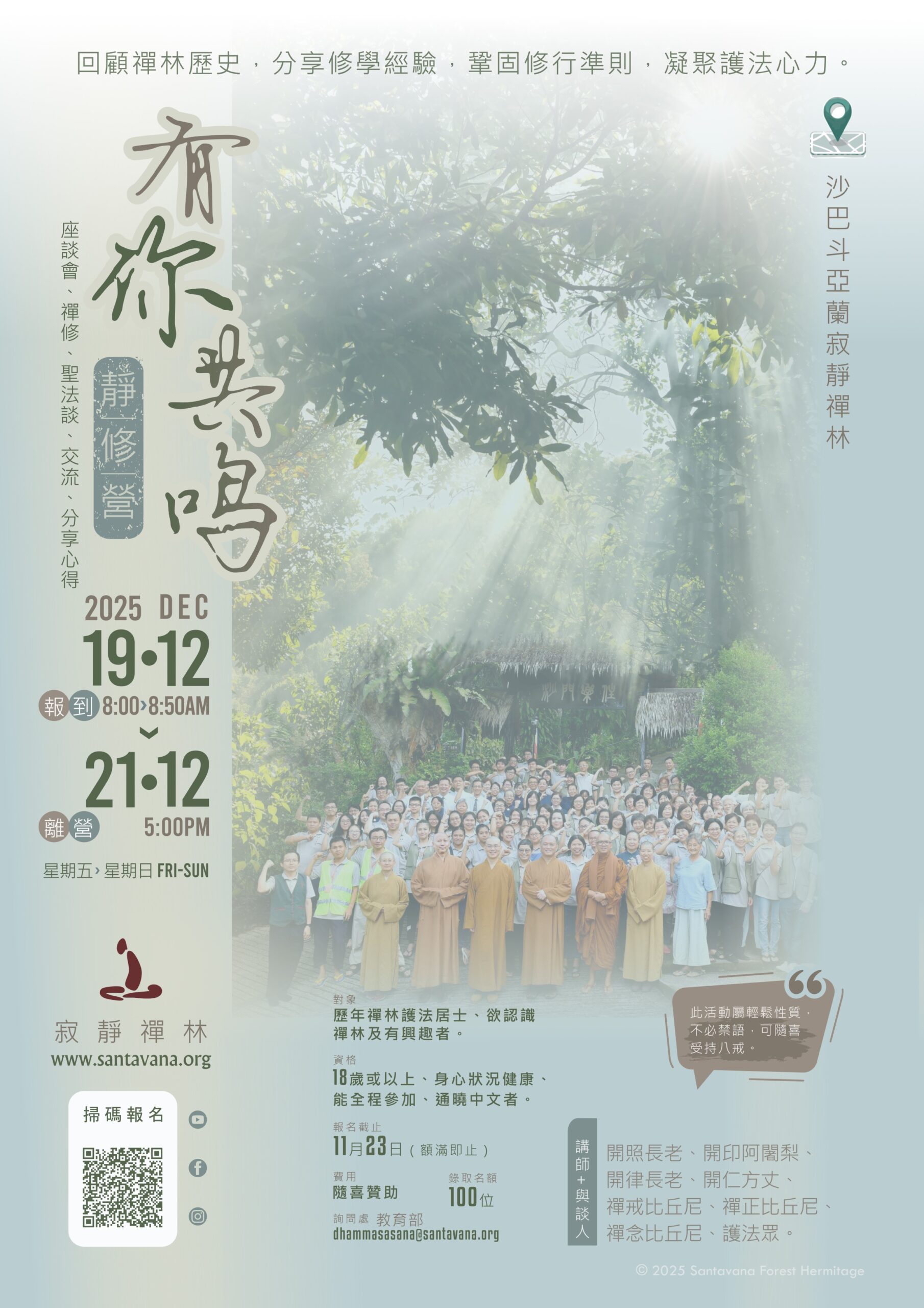 内容:座談會、禪修、聖法談、交流、分享心得。