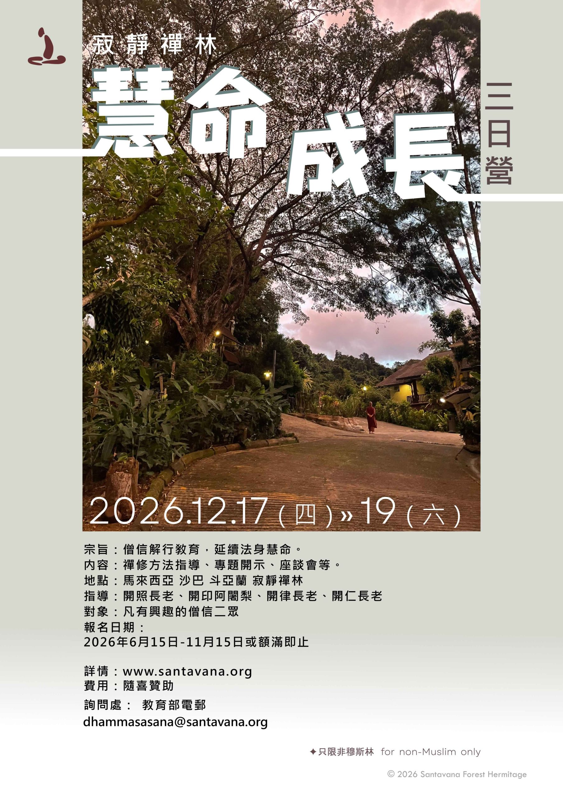 『慧命成長』三日營, 12月17日 (四)至19日(六), 6月15日發佈報名鏈接