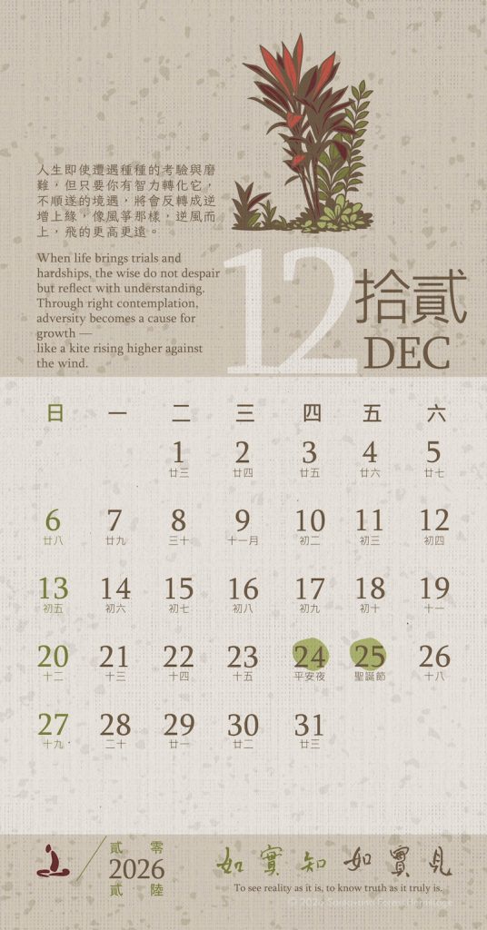 A true spiritual teacher nurtures countless others to become teachers, benefiting many beyond measure. An unwise teacher, however, wishes only that students never surpass him. Thera Kairen‘s Words (The Abbot of Santavana Forest Hermitage)二月法語分享: 如理思惟,是成就正見的所有內因緣當中,最重要的要素,因為它可以讓你化解束縛並帶來安樂。 ──寂靜禪林方丈開仁長老開示錄 Among all inner causes for the realization of right view, wise reflection is the most essential. Through such contemplation, the mind is freed from bondage, and peace naturally arises. Thera Kairen‘s Words (The Abbot of Santavana Forest Hermitage)二月法語分享: 如理思惟,是成就正見的所有內因緣當中,最重要的要素,因為它可以讓你化解束縛並帶來安樂。 ──寂靜禪林方丈開仁長老開示錄 Among all inner causes for the realization of right view, wise reflection is the most essential. Through such contemplation, the mind is freed from bondage, and peace naturally arises. Thera Kairen‘s Words (The Abbot of Santavana Forest Hermitage)三月法語分享: 如果我們真的相信輪回,照理說是不可能造惡的,因為會導致不好的趣向,也由此證明,我們的觀念中其實還是有一些邪見的。 ──寂靜禪林方丈開仁長老開示錄 One who truly believes in rebirth cannot do harm; for every unwholesome deed leads to lower realms. That we still do so shows that wrong view yet dwells within. Thera Kairen‘s Words (The Abbot of Santavana Forest Hermitage)三月法語分享: 如果我們真的相信輪回,照理說是不可能造惡的,因為會導致不好的趣向,也由此證明,我們的觀念中其實還是有一些邪見的。 ──寂靜禪林方丈開仁長老開示錄 One who truly believes in rebirth cannot do harm; for every unwholesome deed leads to lower realms. That we still do so shows that wrong view yet dwells within. Thera Kairen‘s Words (The Abbot of Santavana Forest Hermitage)四月法語分享: 沒有生起過的邪見或惡見,不要認為永遠都不會生,因緣和合下也可能發生,所以要多親近善知識和學會如理思惟,才能常保遠離惡法。 ──寂靜禪林方丈開仁長老開示錄 Do not assume that wrong view not yet arisen will never arise; when conditions gather, delusion may return. Stay close to the good and wise, and practice wise reflection— so the mind remains distant from unwholesome paths. Thera Kairen‘s Words (The Abbot of Santavana Forest Hermitage)四月法語分享: 沒有生起過的邪見或惡見,不要認為永遠都不會生,因緣和合下也可能發生,所以要多親近善知識和學會如理思惟,才能常保遠離惡法。 ──寂靜禪林方丈開仁長老開示錄 Do not assume that wrong view not yet arisen will never arise; when conditions gather, delusion may return. Stay close to the good and wise, and practice wise reflection— so the mind remains distant from unwholesome paths. Thera Kairen‘s Words (The Abbot of Santavana Forest Hermitage)五月法語分享: 正見鼓舞著我們修行,著手於戒定慧的修煉。一切身口意的行為要用正見來核實,不只是表面的呈現。 ──寂靜禪林方丈開仁長老開示錄 Right view inspires our practice and guides the cultivation of morality, concentration, and wisdom. All actions of body, speech, and mind should be examined through right view — not merely by their outward appearance. Thera Kairen‘s Words (The Abbot of Santavana Forest Hermitage)五月法語分享: 正見鼓舞著我們修行,著手於戒定慧的修煉。一切身口意的行為要用正見來核實,不只是表面的呈現。 ──寂靜禪林方丈開仁長老開示錄 Right view inspires our practice and guides the cultivation of morality, concentration, and wisdom. All actions of body, speech, and mind should be examined through right view — not merely by their outward appearance. Thera Kairen‘s Words (The Abbot of Santavana Forest Hermitage)六月法語分享: 行住坐臥都可以禪修,每一個念頭都去審察是善法增加還是惡法增加,只要你把心拉回到身上就是正念,安住地審查過程就是正知。 ──寂靜禪林方丈開仁長老開示錄 In walking, standing, sitting, or lying down, one may always dwell in meditation. With each thought that arises, observe— does it nurture the wholesome or the unwholesome? When the mind returns to the body, that is mindfulness; to rest gently in that awareness is clear comprehension. Thera Kairen‘s Words (The Abbot of Santavana Forest Hermitage)六月法語分享: 行住坐臥都可以禪修,每一個念頭都去審察是善法增加還是惡法增加,只要你把心拉回到身上就是正念,安住地審查過程就是正知。 ──寂靜禪林方丈開仁長老開示錄 In walking, standing, sitting, or lying down, one may always dwell in meditation. With each thought that arises, observe— does it nurture the wholesome or the unwholesome? When the mind returns to the body, that is mindfulness; to rest gently in that awareness is clear comprehension. Thera Kairen‘s Words (The Abbot of Santavana Forest Hermitage)七月法語分享: 每天都要花一點時間讓身心放鬆,靜靜地看著它,放鬆地注意呼吸,身心靈的細胞將擁有重組的機會,並獲得正能量。 ──寂靜禪林方丈開仁長老開示錄 Each day, give your body and mind a moment of ease. Watch in stillness, breathe in peace. In that quiet space, every cell is renewed — and wholesome energy awakens from within. Thera Kairen‘s Words (The Abbot of Santavana Forest Hermitage)七月法語分享: 每天都要花一點時間讓身心放鬆,靜靜地看著它,放鬆地注意呼吸,身心靈的細胞將擁有重組的機會,並獲得正能量。 ──寂靜禪林方丈開仁長老開示錄 Each day, give your body and mind a moment of ease. Watch in stillness, breathe in peace. In that quiet space, ev
