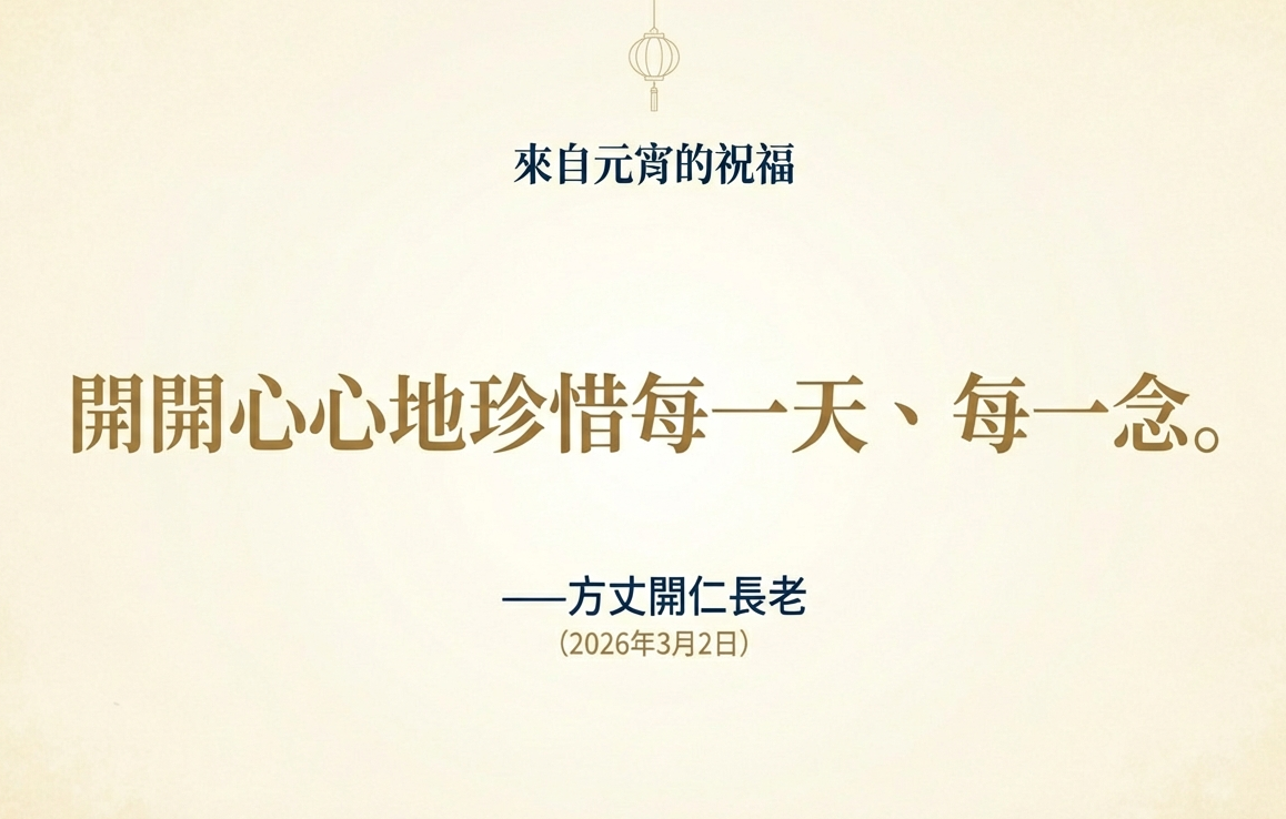 在農曆新年的尾聲——元宵節,引用漢巴經論的道理,彼此共勉在修道上要如「馬寶」那般「精進」地勇往直前。經典形容的「馬寶」乃具備「受極御治,疾得善調」的特質,深得輪王的歡喜,意即「精進」是具備斷除煩惱、永不退縮的心力,且不盲目衝動,平衡安穩地朝向涅槃前行。