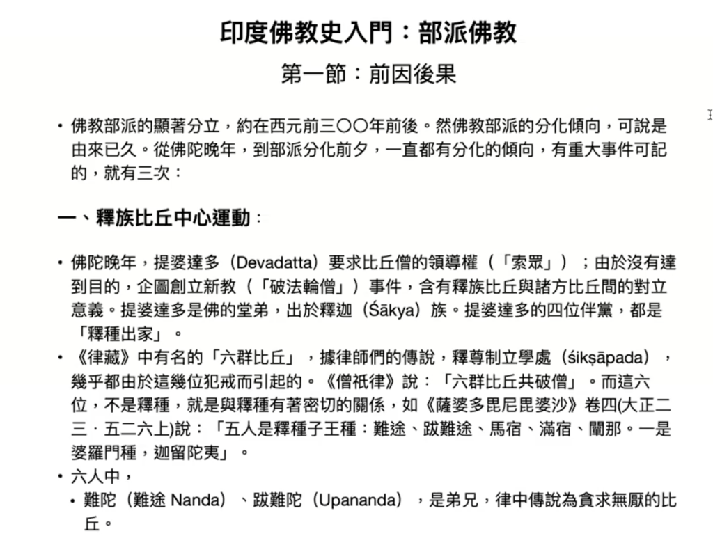 延續第一期「原始佛教」系列的宗旨,本次課程繼續致力於探索佛教的根本,釐清當今佛教面貌的脈絡。在第一堂課中,寂松老師依據印順導師的經典著作如《印度佛教思想史》等,詳細介紹了佛世時釋族比丘的運動、五百及七百結集對戒律的異議,如何埋下了佛教部派分化的因缘。