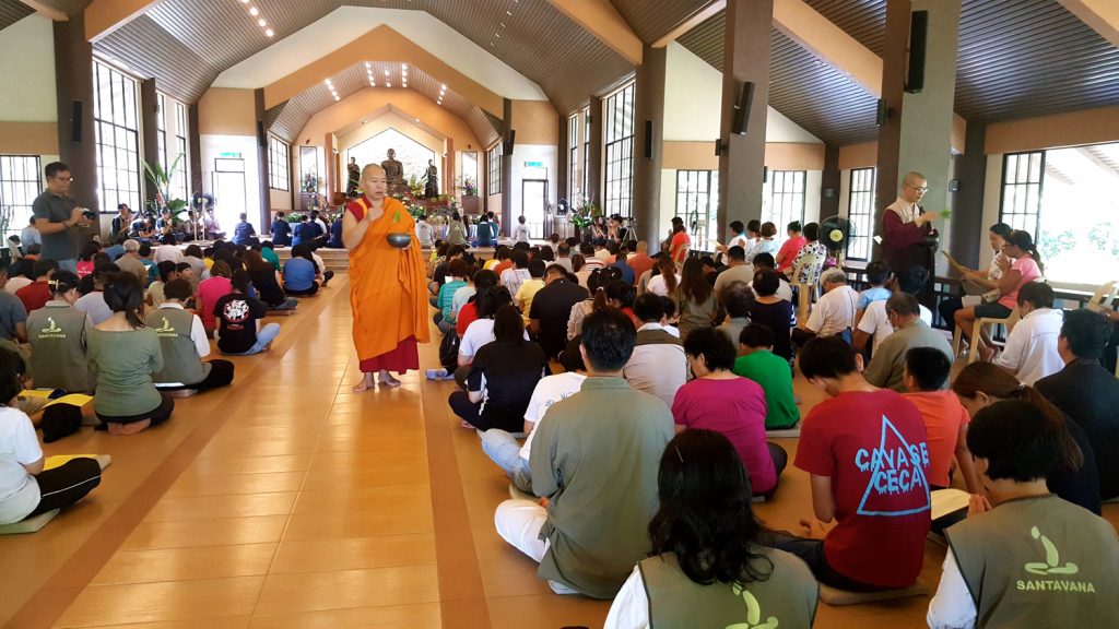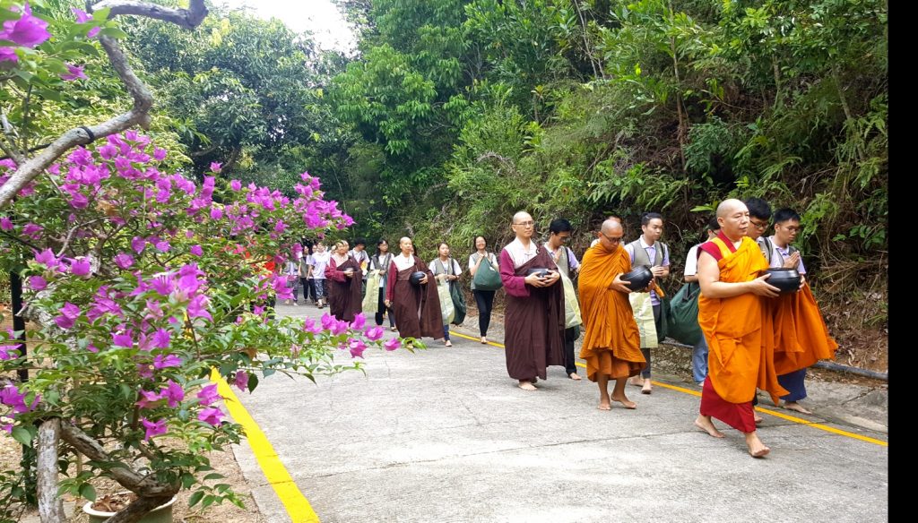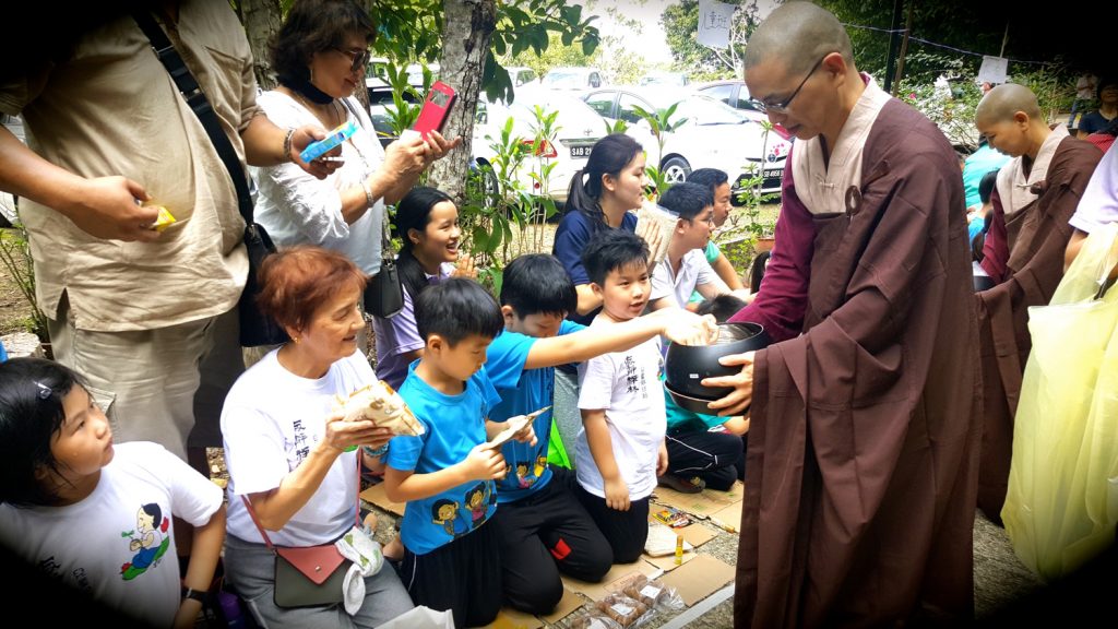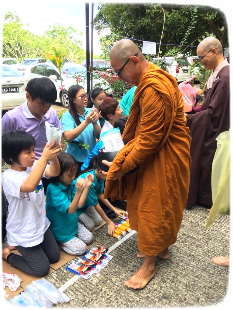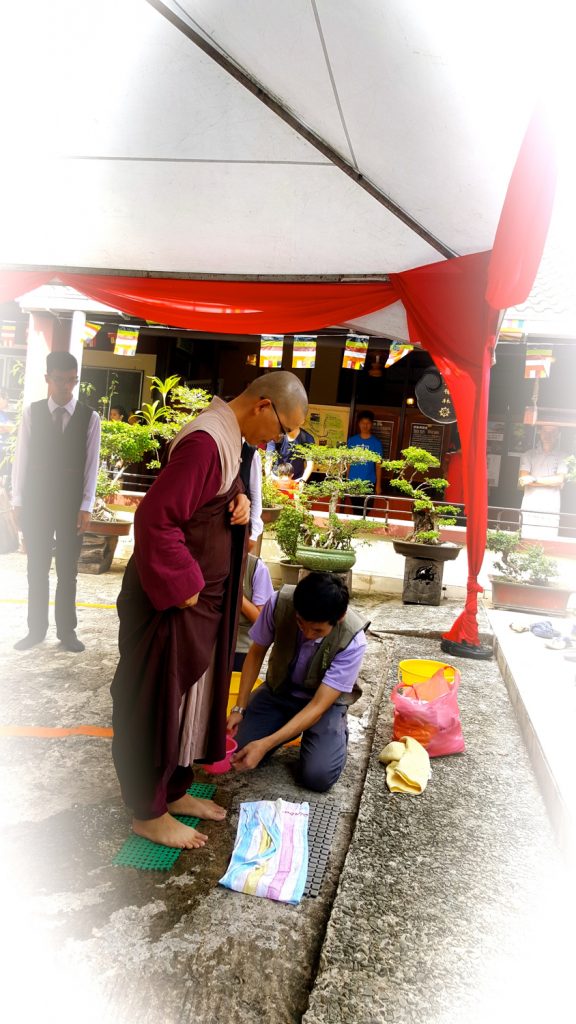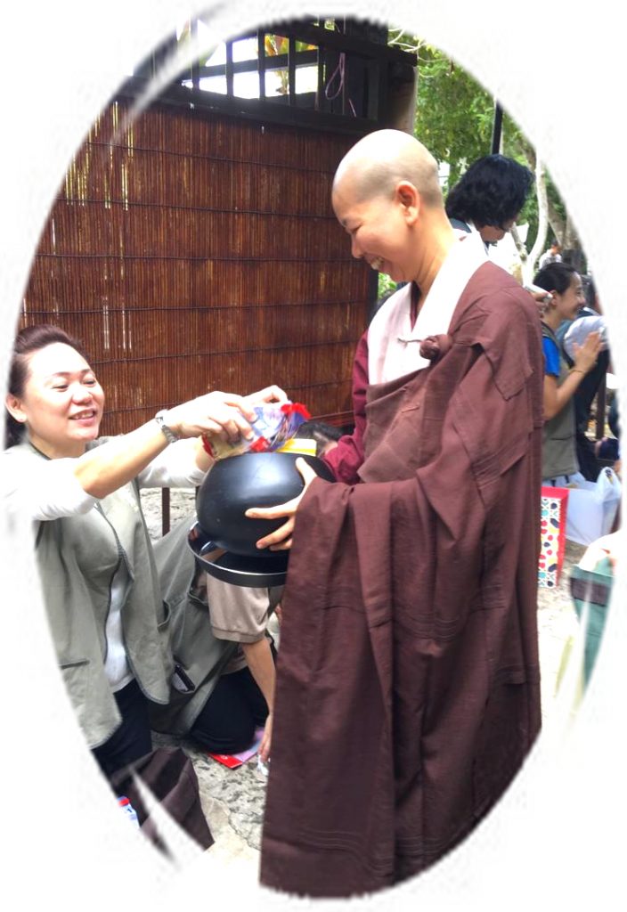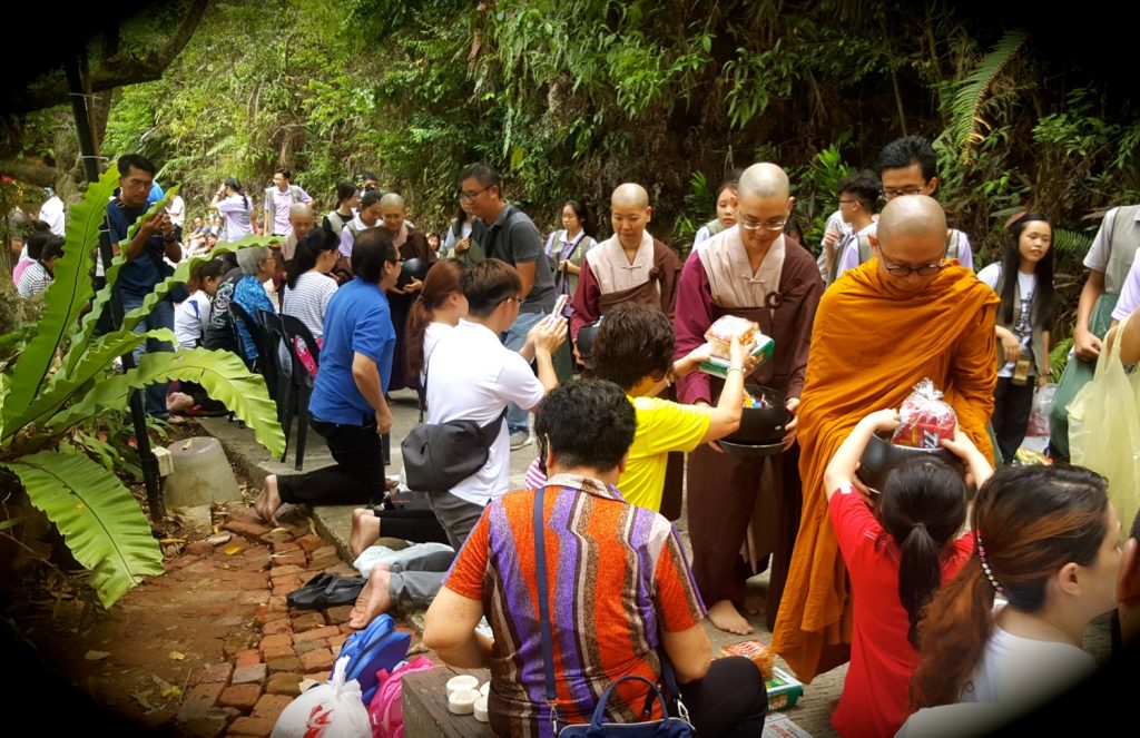 今日的佛陀日慶典,除了有六位出家眾托缽接受信眾的供養外,也有兩名醫師分別為信眾量血壓及血糖。