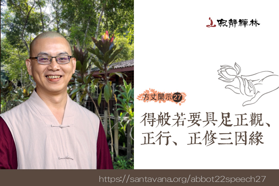 《大智度論》卷63〈41信謗品〉:「復次,佛此中自說因緣:般若波羅蜜如虛空,畢竟淨,無所染汙,是般若波羅蜜。觀色等諸法實相──不生不滅,行六波羅蜜、修四念處等,如是可得般若波羅蜜。是般若波羅蜜三種因緣:正觀、正行、正修。」