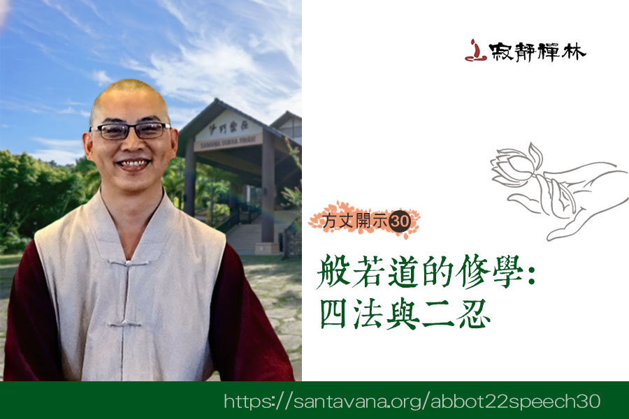 《般若經》初品即說到菩薩的修行,要先學菩薩法——六度,然後再學二乘法——道品等,最後學佛的功德法。這裡提到菩薩學習四念住之後,有能力住於四念處的時候,就會不忘本願、不捨大悲,以不可得空的智慧調伏心地。不忘本願,就是菩提願;不捨大悲,即大悲心;不可得空,為無所得慧。這三個就是菩薩的三心。具備了三心之後,菩薩接下來的修學次第,就是柔順忍和無生法忍兩個次第。