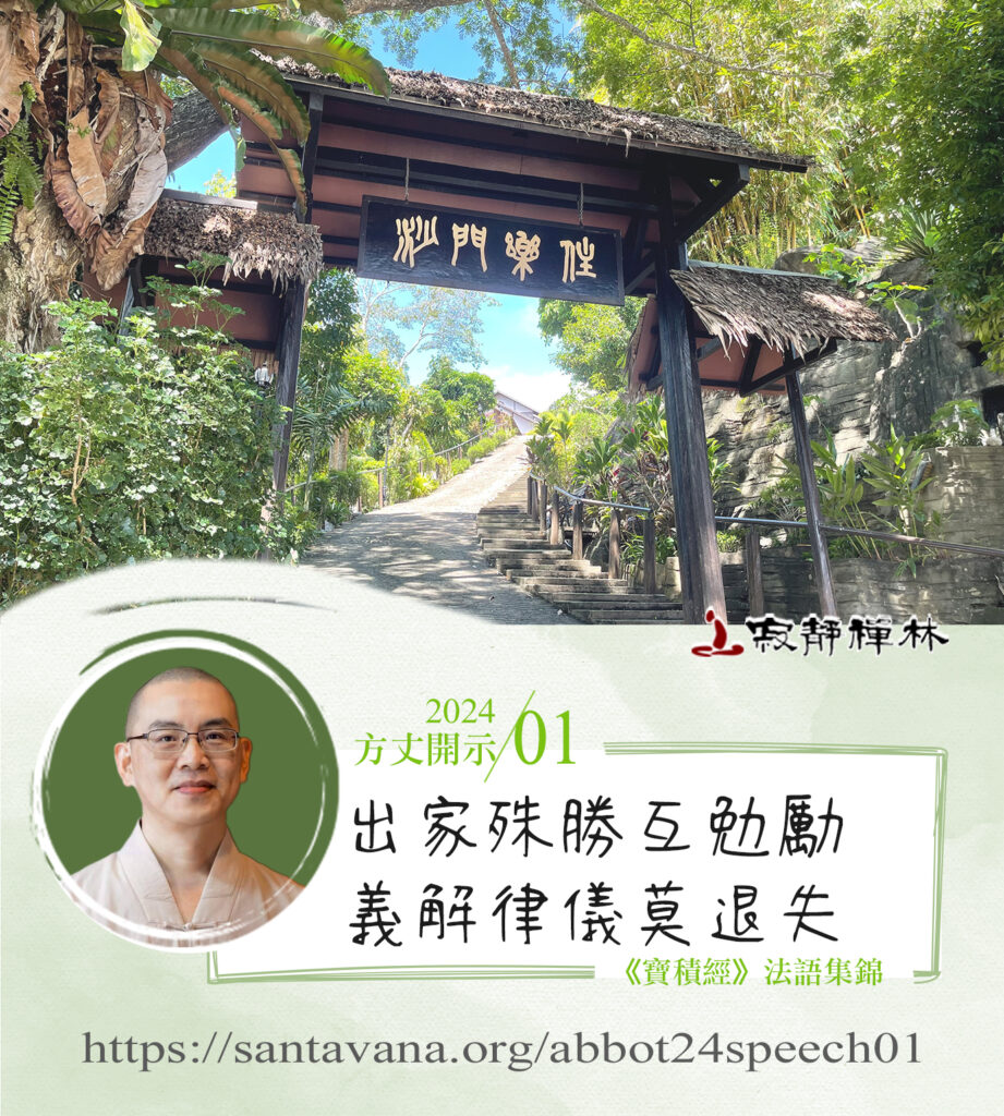 最近,我聽說,一些出家眾出家二十幾年後,還俗去基督教。他們說,佛教冷漠無情,他們要到基督教那邊去唱聖歌,這樣子比較有人情味一點。其實,佛法也不見得都是如此——只要我們在戒律上有把握好該有的分寸與原則,那麼,我們平常生活跟一般人不會有太大的差別。但是,我們內心要有堅定持戒的精神,否則,也是會慢慢流俗,而變得跟外面的人一樣了。
