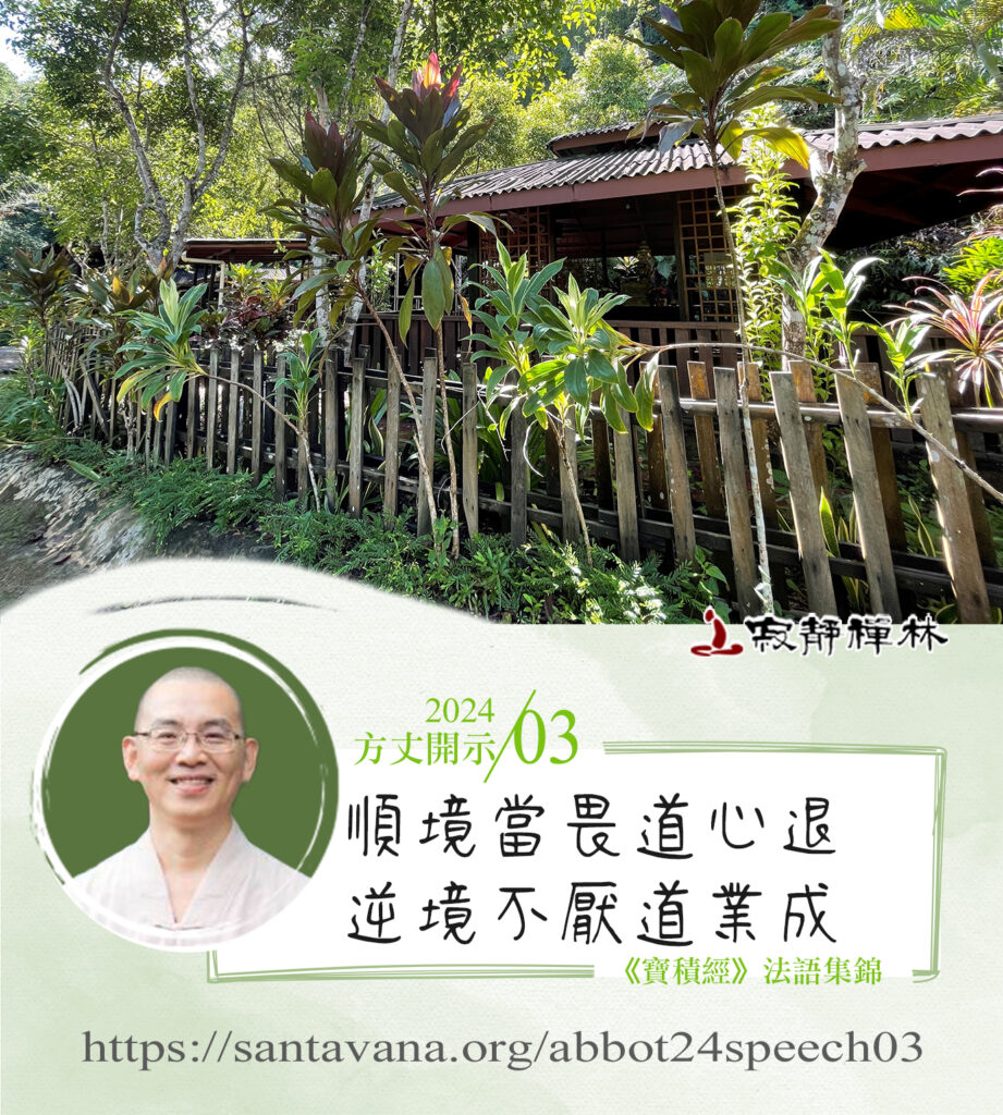 修行者本身,有時要吃一點苦,不要吃不了苦,覺得有一點點不如意就要離開。現代人比較多這樣子的情況。