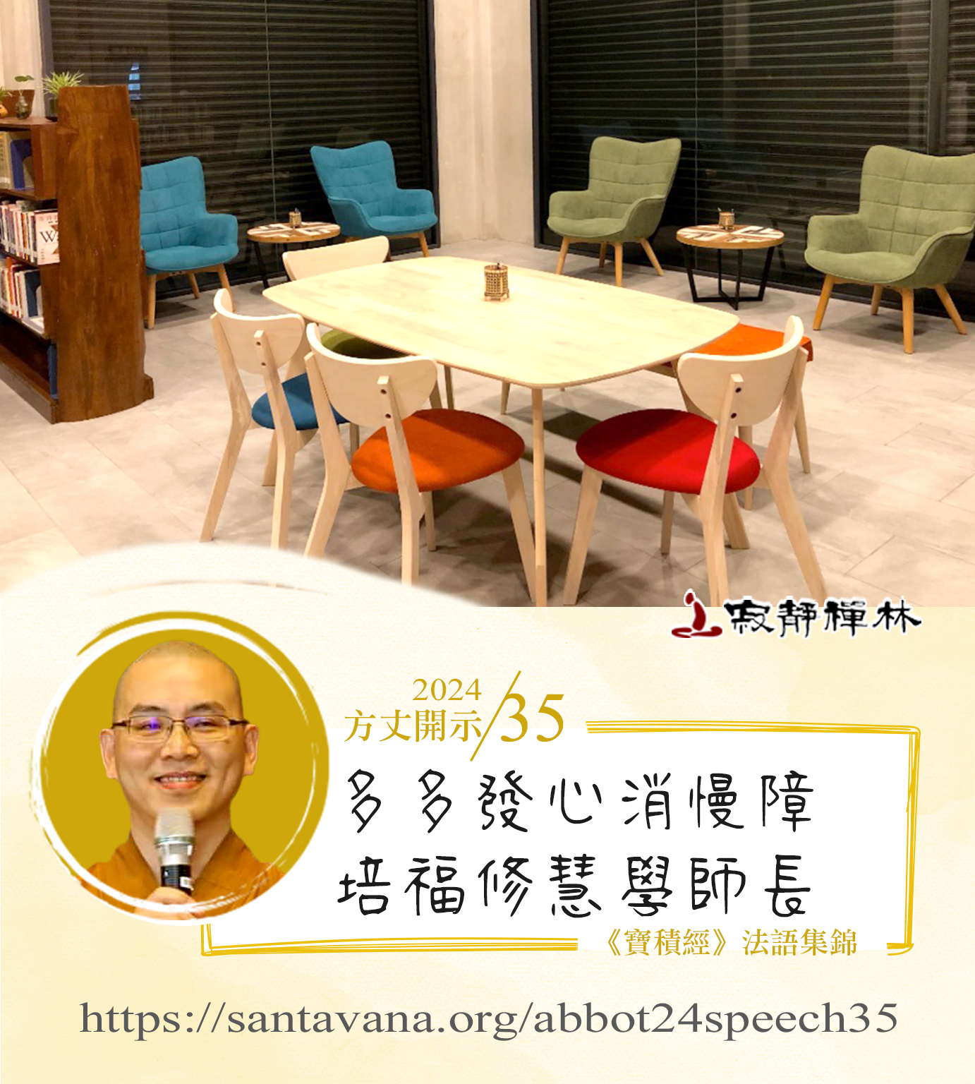 以前院長跟我們講過一個經驗。他說,以前他住的大寺廟,中午12點到下午2點的午休時間,常住要輪流去當知客。這個時段剛好是午飯後,大家都很想去睡一下的時刻,因此沒有人願意去當知客。當時,他就發心去當。他說在這兩三年當中,就是他看書最多的時間。因為他說,平常寺廟裡面,要參加法會共修、要關心信徒等等,事務太繁忙了;反而是他當知客那幾年,他看了一點書。