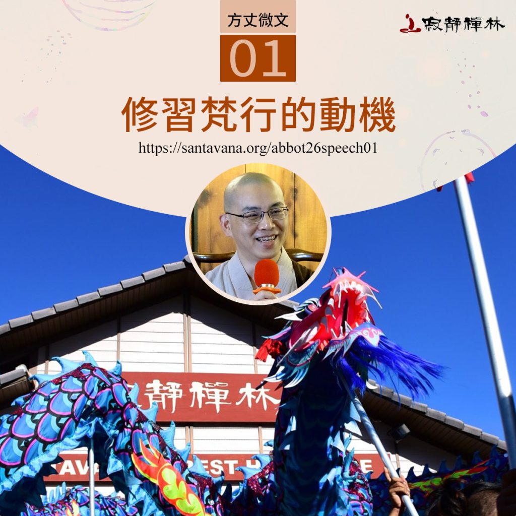 修行的動機,其實佛在《阿含經》裡也是有說的,像《中部39馬邑大經》提到說,佛陀跟比丘們說:我們稱呼自己是沙門,但是要知道沙門有沙門的正道,沙門有沙門的行持,有這一些行持才算名副其實的沙門。