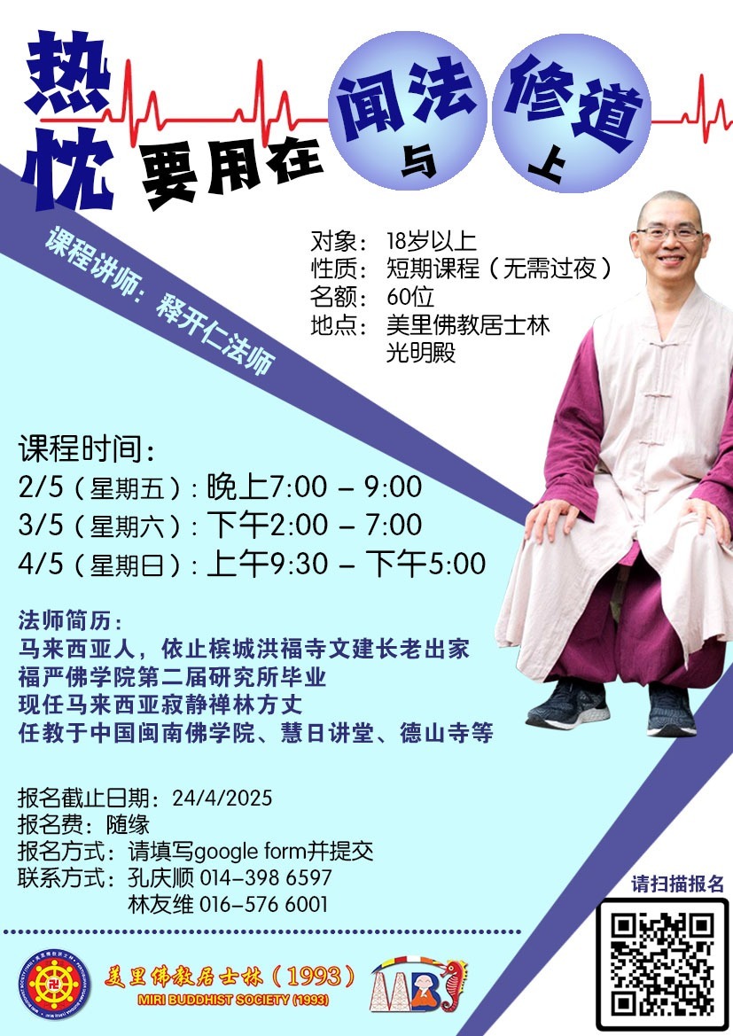 5月2日(五)、3日(六)、4日(日)「熱忱要用在聞法於修道上」專題開示 於 馬來西亞 砂拉越 美里 海報