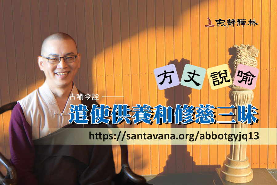 第二個譬喻,修慈心禪則強調意念清淨,若禪修正念正知都專注於祝福衆生離苦得樂的話,這種善的強大意業,將感得無量的福德。