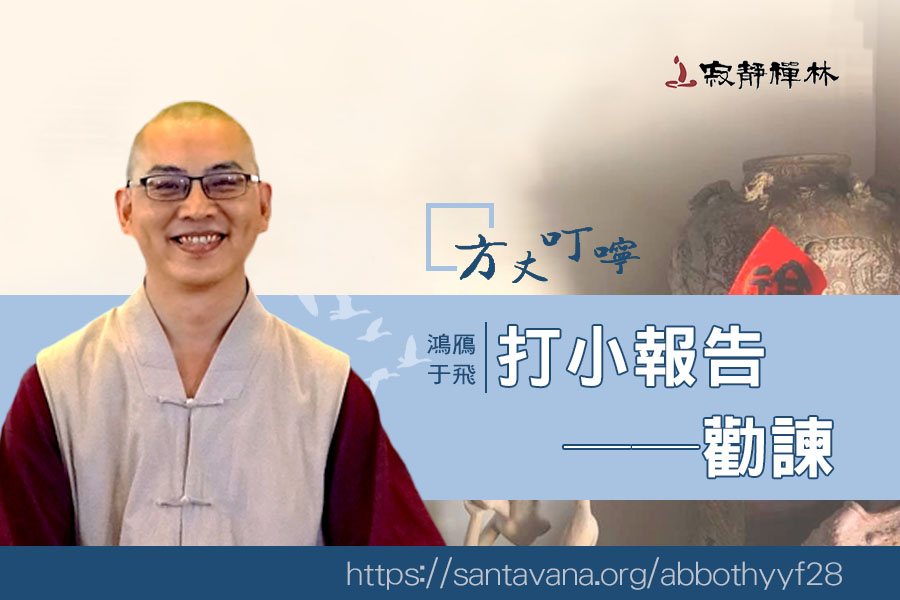 這個人也不會去找打小報告的人算帳,你在經論裡面比較看不到。為什麼?因為「打小報告」,其實在僧團裡面應該是叫做「勸諫」,是一種關心、勸導。他行為不檢,我們跟師長講,這對他並非是一種不善的行為。
