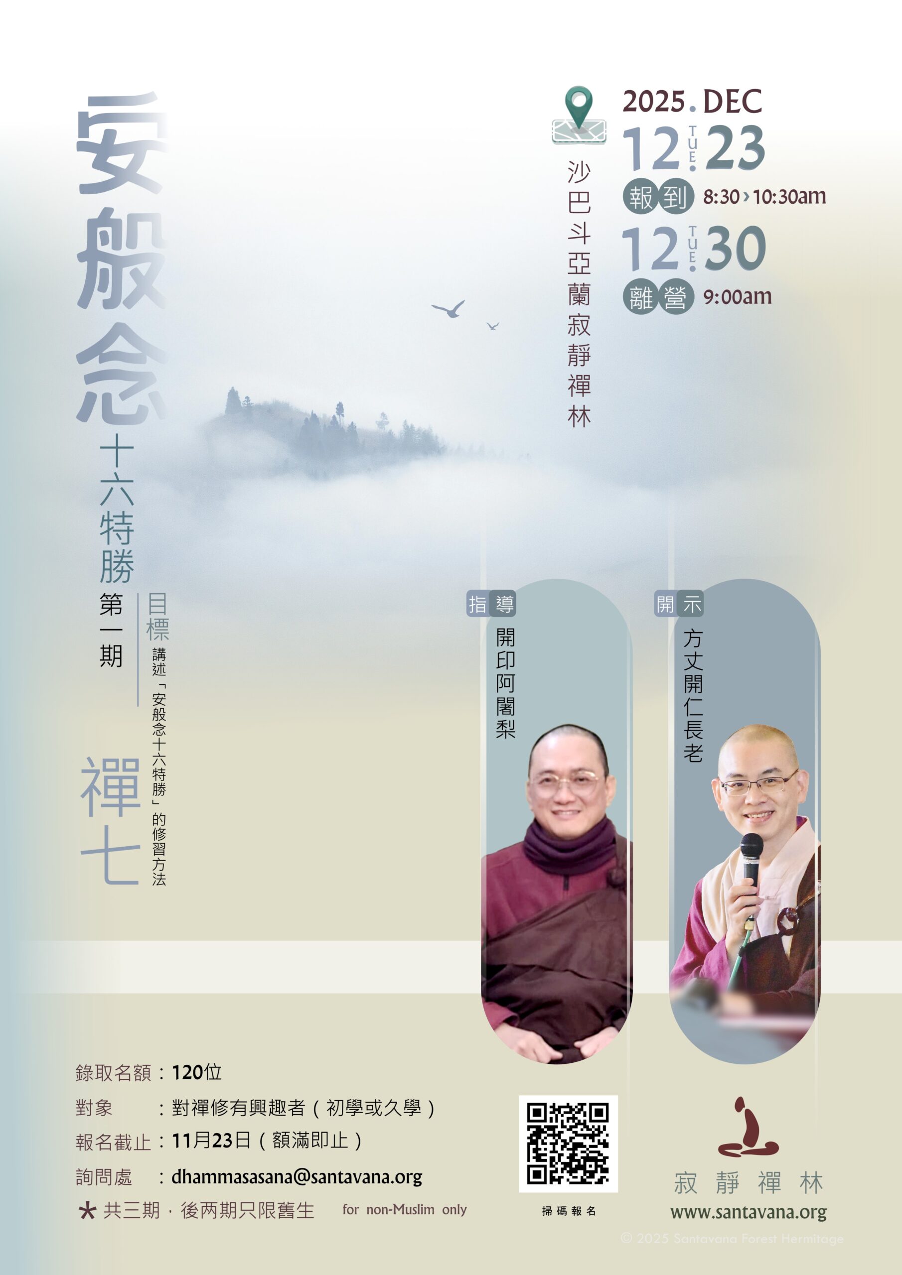 報名:額滿! 詢問請洽 dhammasasana@santavana.org