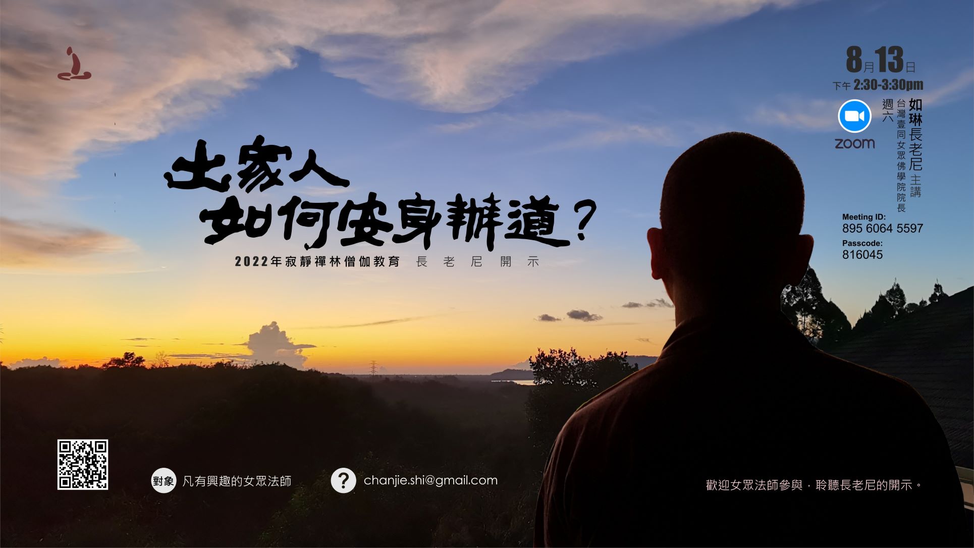 出家人如何安身辦道?8月13日(六) 歡迎女眾法師參與ZOOM線上課程 (新增YouTube直播)