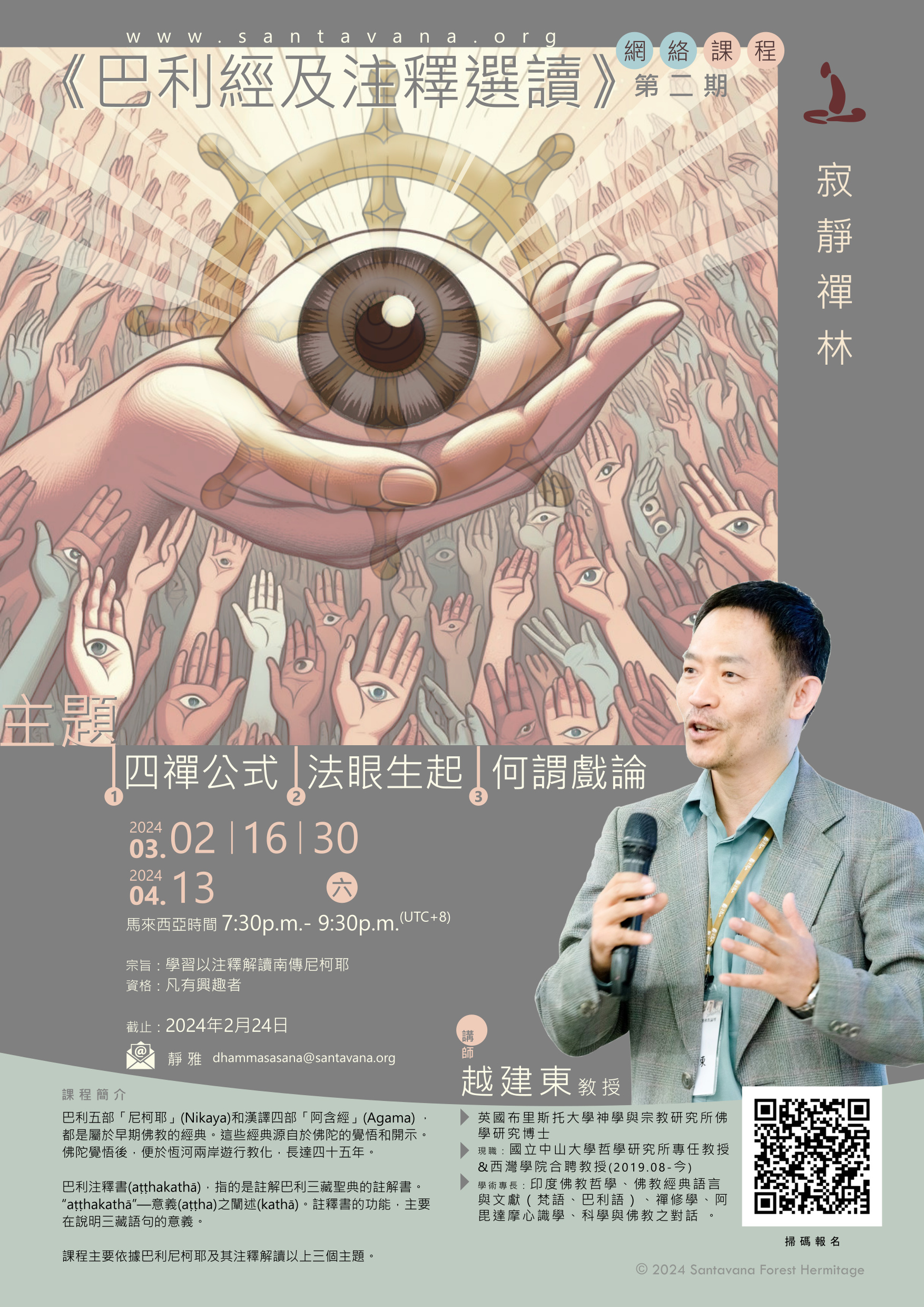 凡滿十八歲或以上並對佛法有興趣者皆可報名參加,大眾可上禪林網頁(www.santavana.org)填寫報名表格,欲知詳情者可聯絡靜傳016-845 2008或靜玄012-828 0322(2pm-7pm)以查詢進一步詳情。