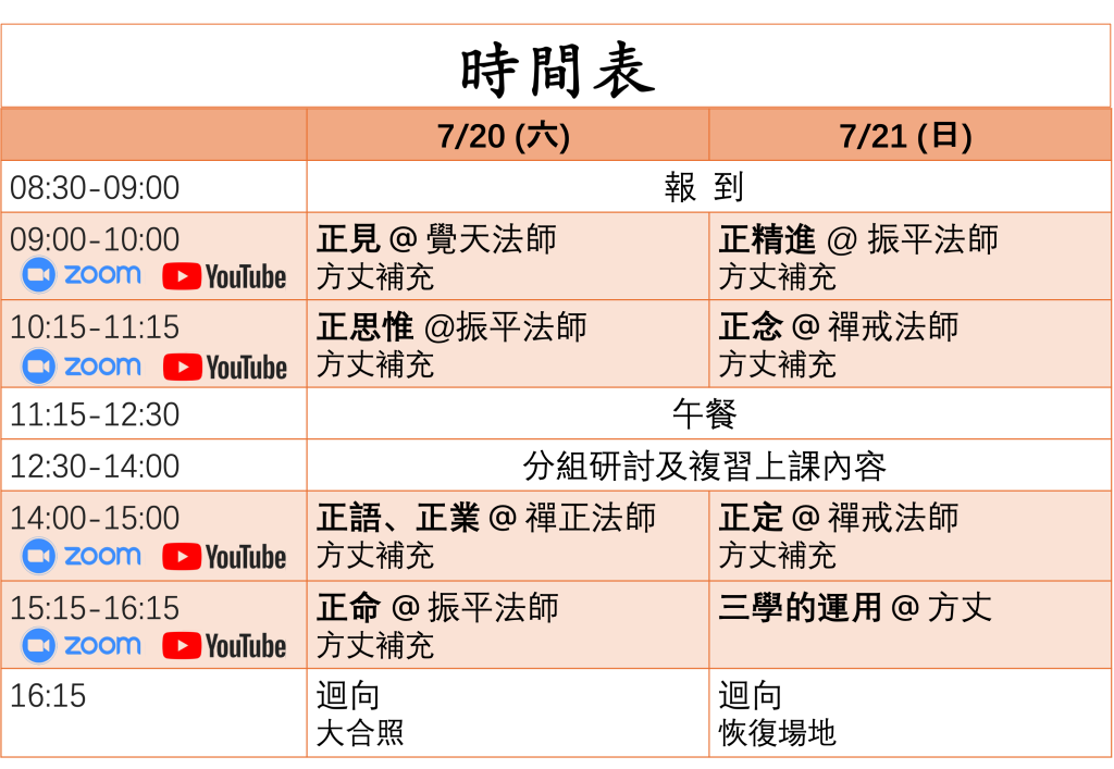 1、佛法難聞,請全程參與,並避免遲到早退,培養對法和講師恭敬之心態。