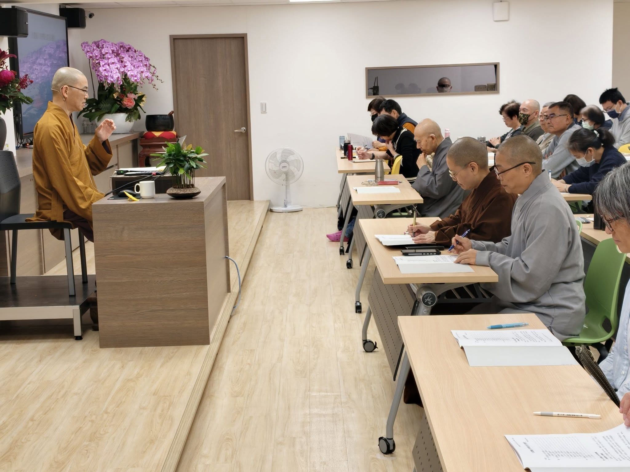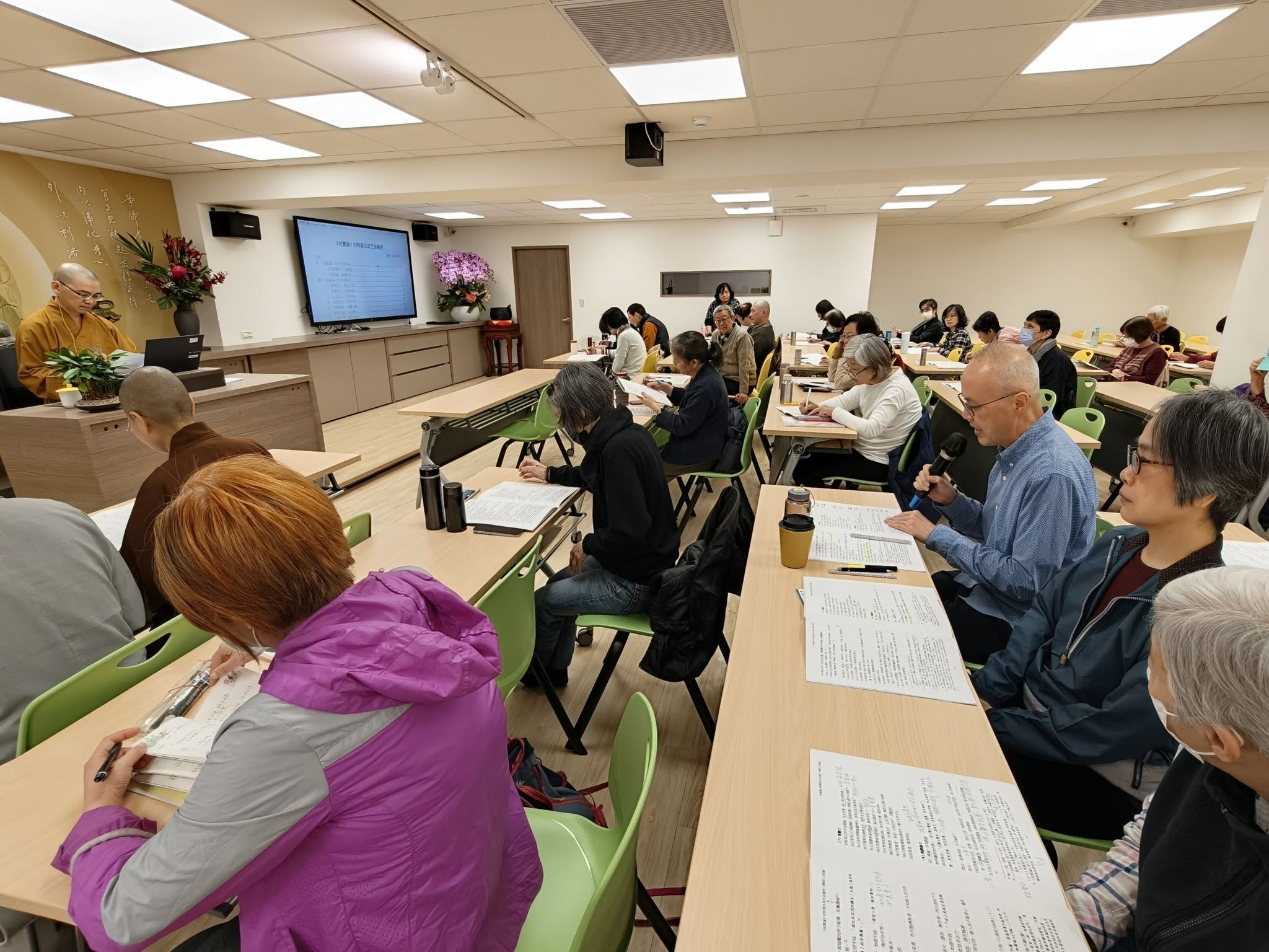 開仁法師表示,學佛要跟上時代的腳步,特別把講義給AI整理,產出一份「AI分析《成實論》講義的特色【我們親自來審察AI】」的4頁內容,讓同學比較與原講義之差異。法師並指出,AI擅於把文章轉成白話,一般人雖較能理解,但細查內容,仍有可能偏離原文意涵,因此勿盲信AI,自己要有審查的能力。
