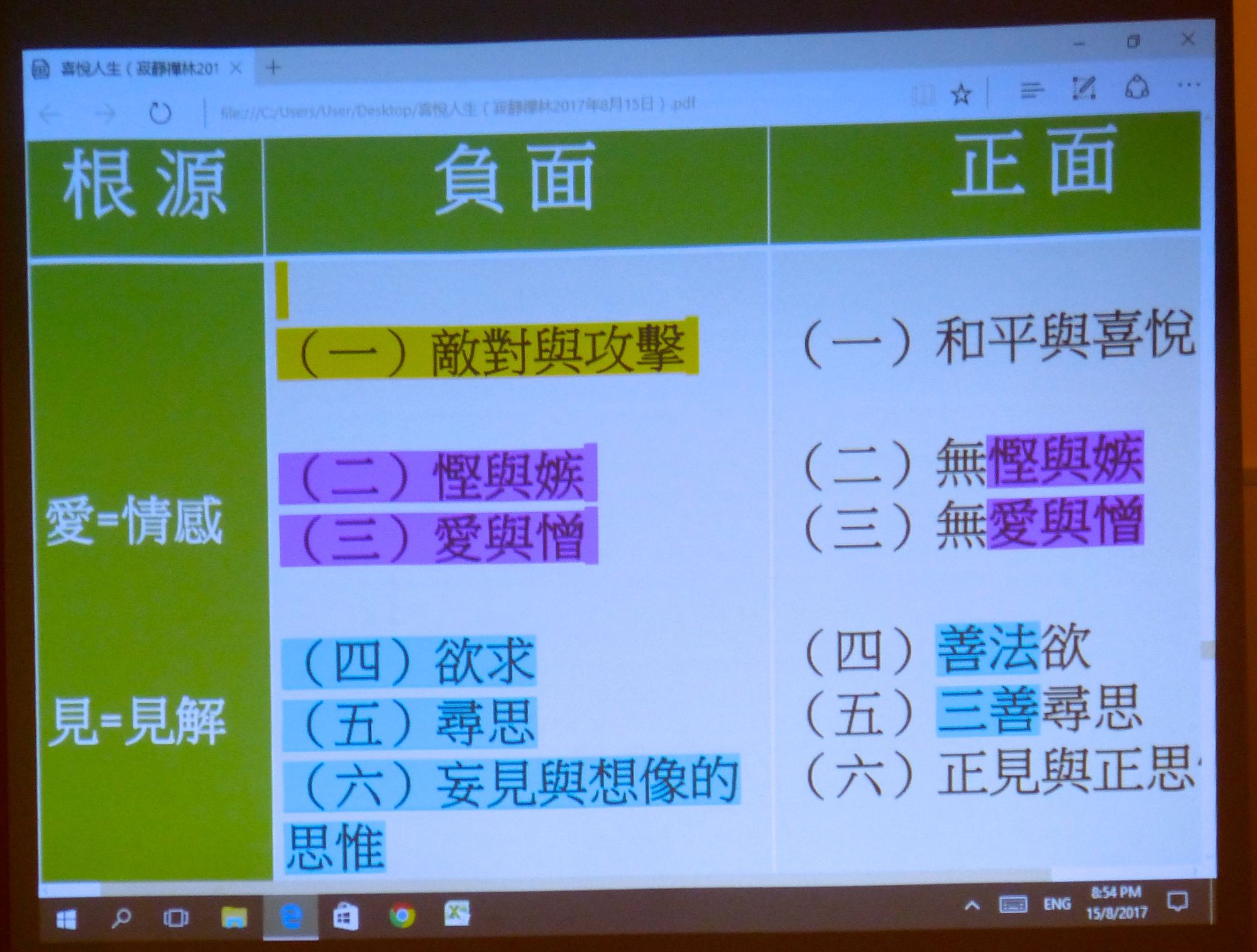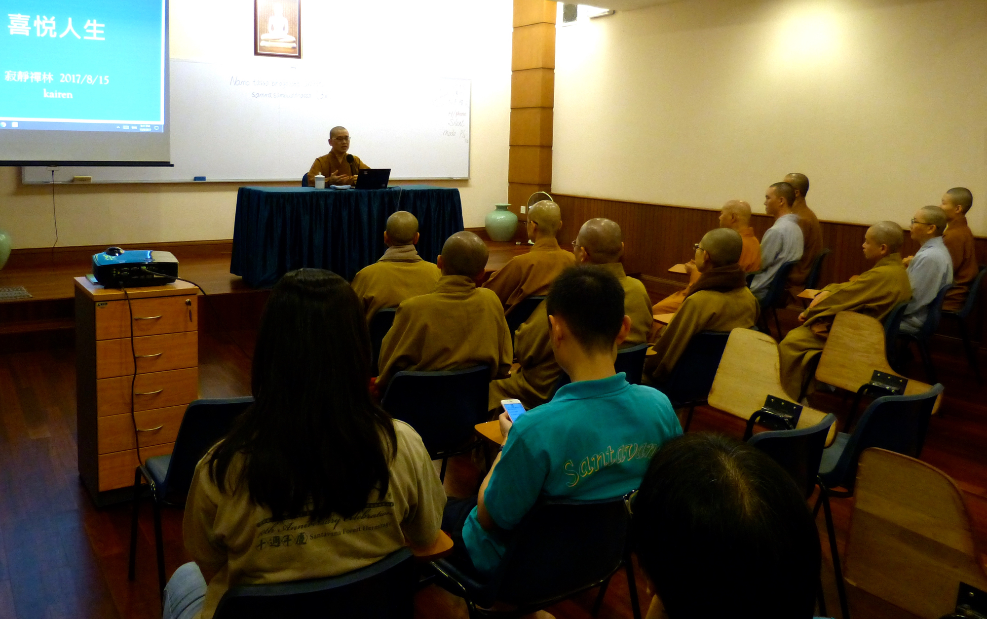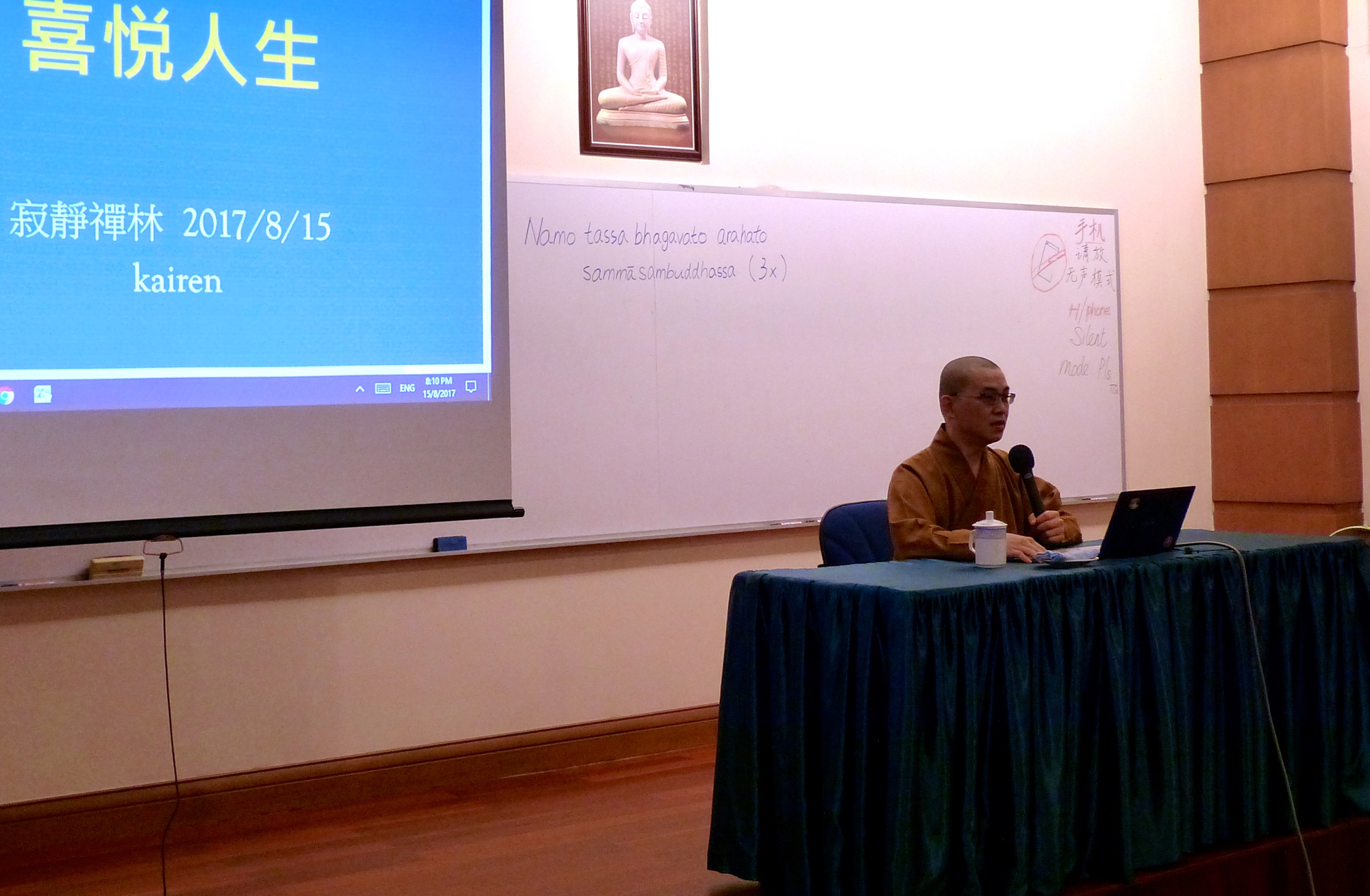 2017年8月15日(二)晚上8pm-9.30pm,開仁長老在亞庇行政中心給予大眾「喜悅人生」佛法開示。