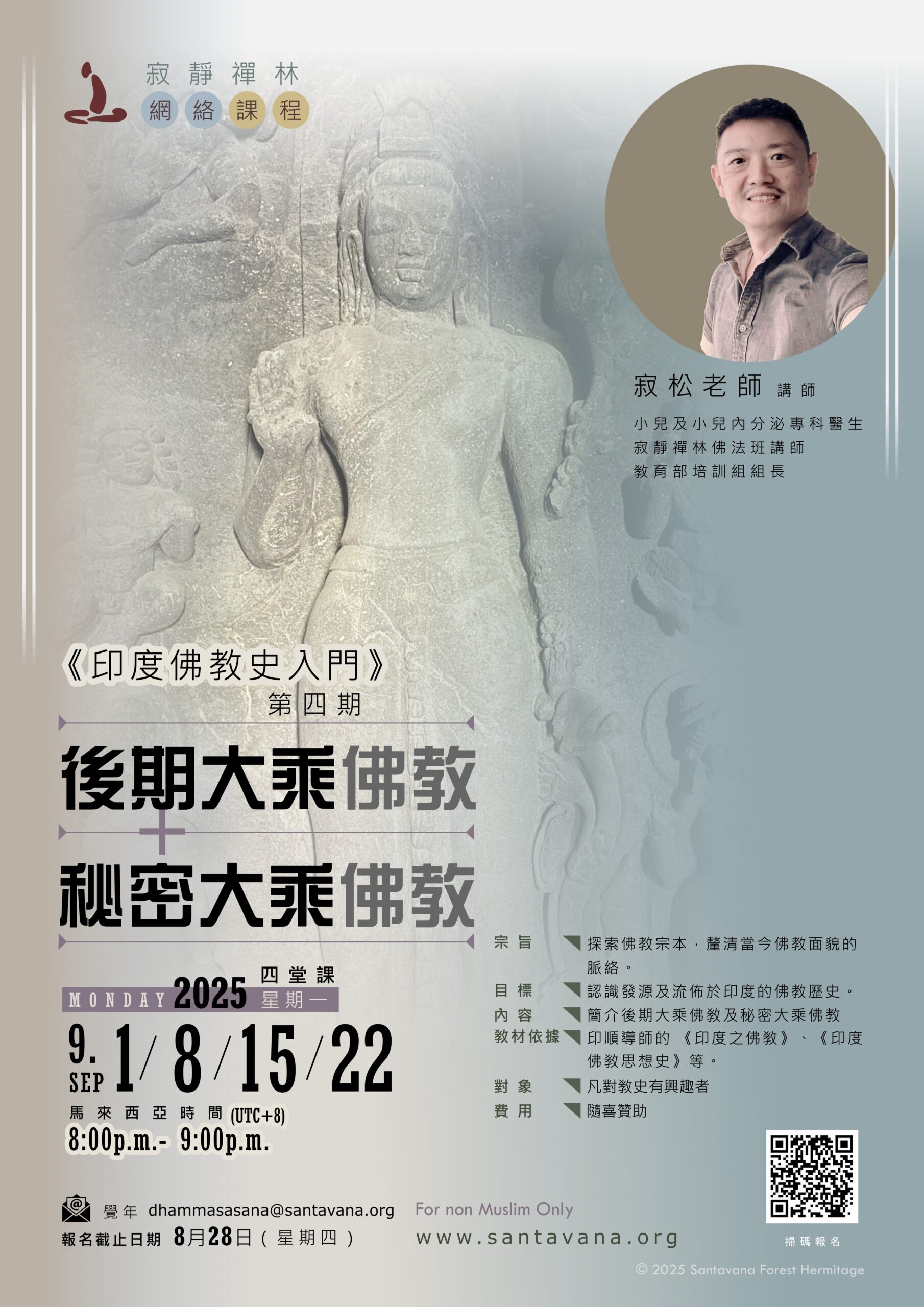 《印度佛教史入門》 第四期~後期大乘佛敎&秘密大乘佛敎 Zoom網課 (星期一,共4堂課) 已結束