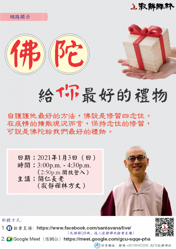 詳情聯絡:靜傳 +60168452008 或FB寂靜禪林