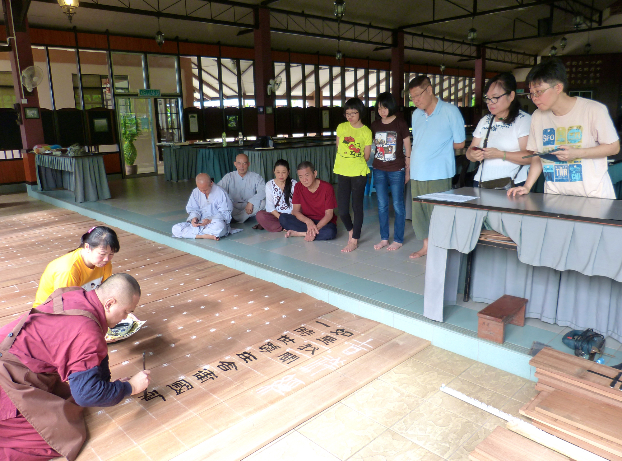 感謝顏嘉偉居士贊助木板,寂源居士提供刨木服務,圖書館館長靜觀居士全程籌劃及招集書法班同學和斗亞蘭居士們一起來協助。